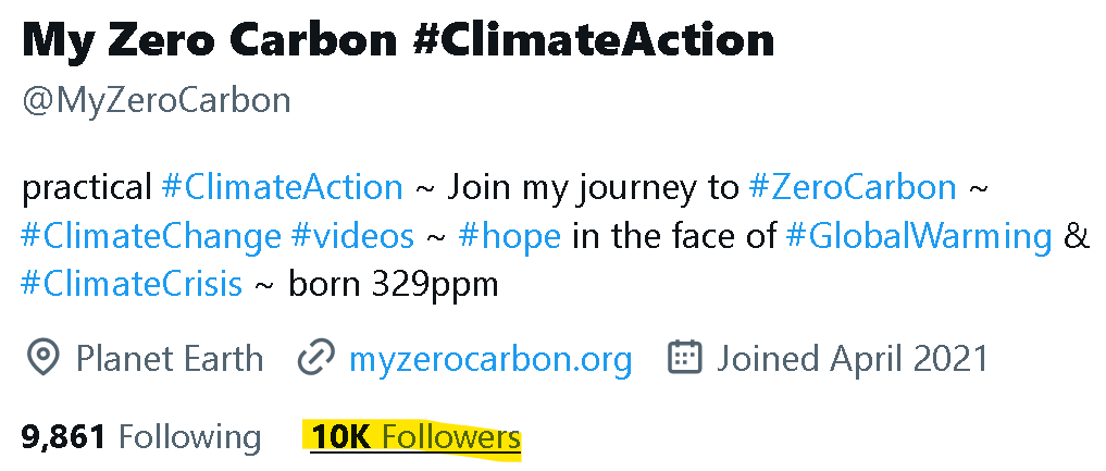 Another Social Media milestone. Today (Monday 4 March 2024), My Zero Carbon is celebrating 10,000 followers on Twitter.