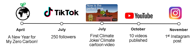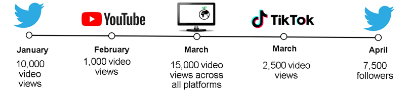 Our social media presence saw remarkable expansion, especially on Twitter, YouTube, and TikTok. With over 10,000 posts across platforms, we now have a following of 8,190 people. Our focus on embedding videos directly into tweets boosted engagement. We had 12,588 video views on Twitter alone. This approach has been important for spreading our climate action messages far and wide an in an effective way.