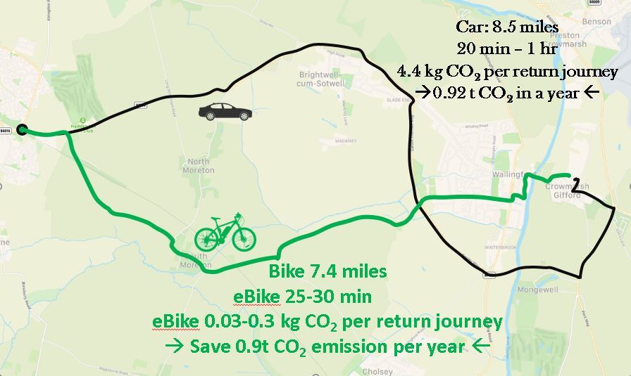 Commuting by ebike to work instead of the car will save me 0.9t of C02 in a year.